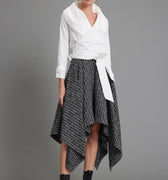 Handkerchief-Hem Black & Cream Tweed Skirt