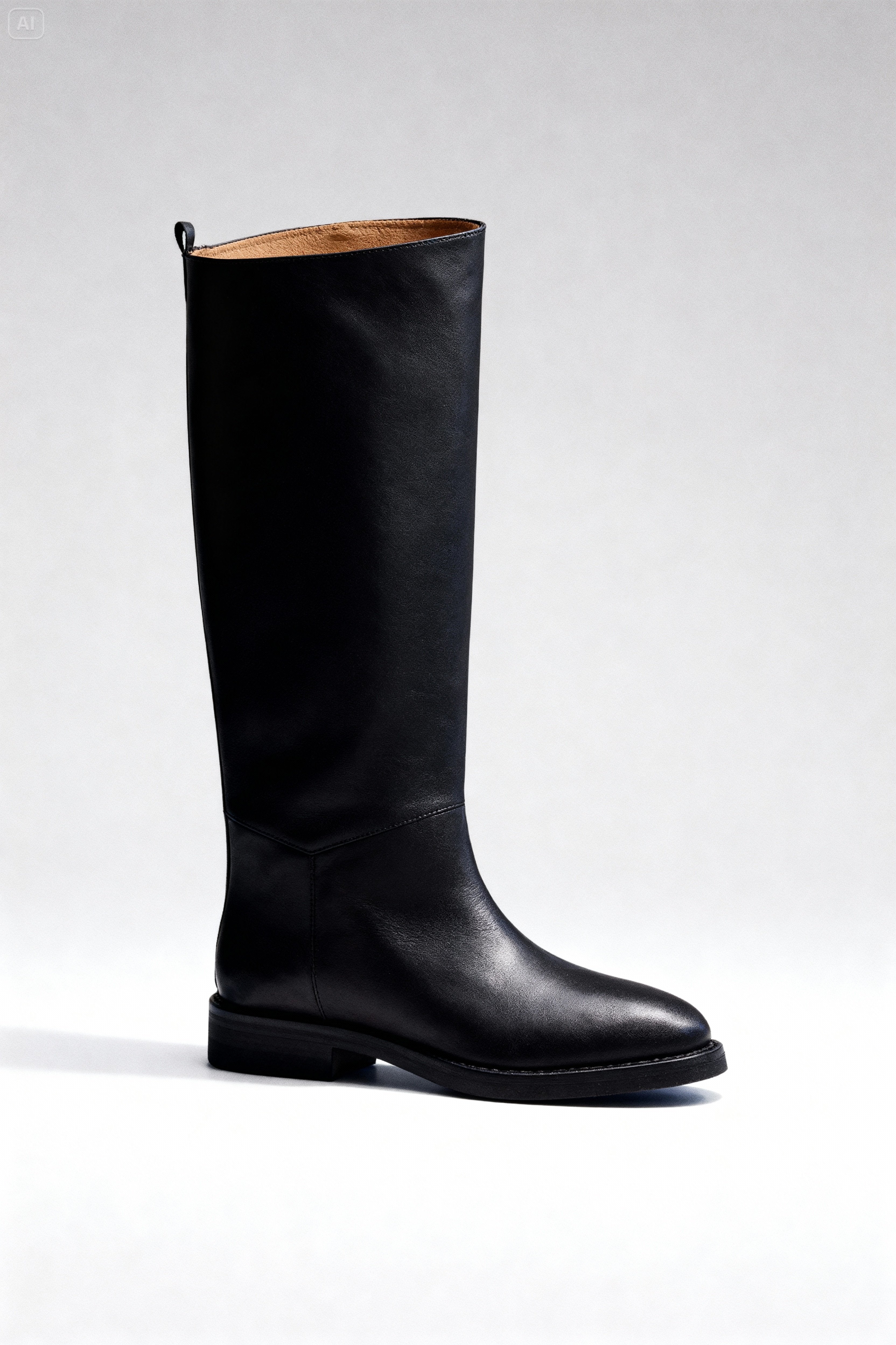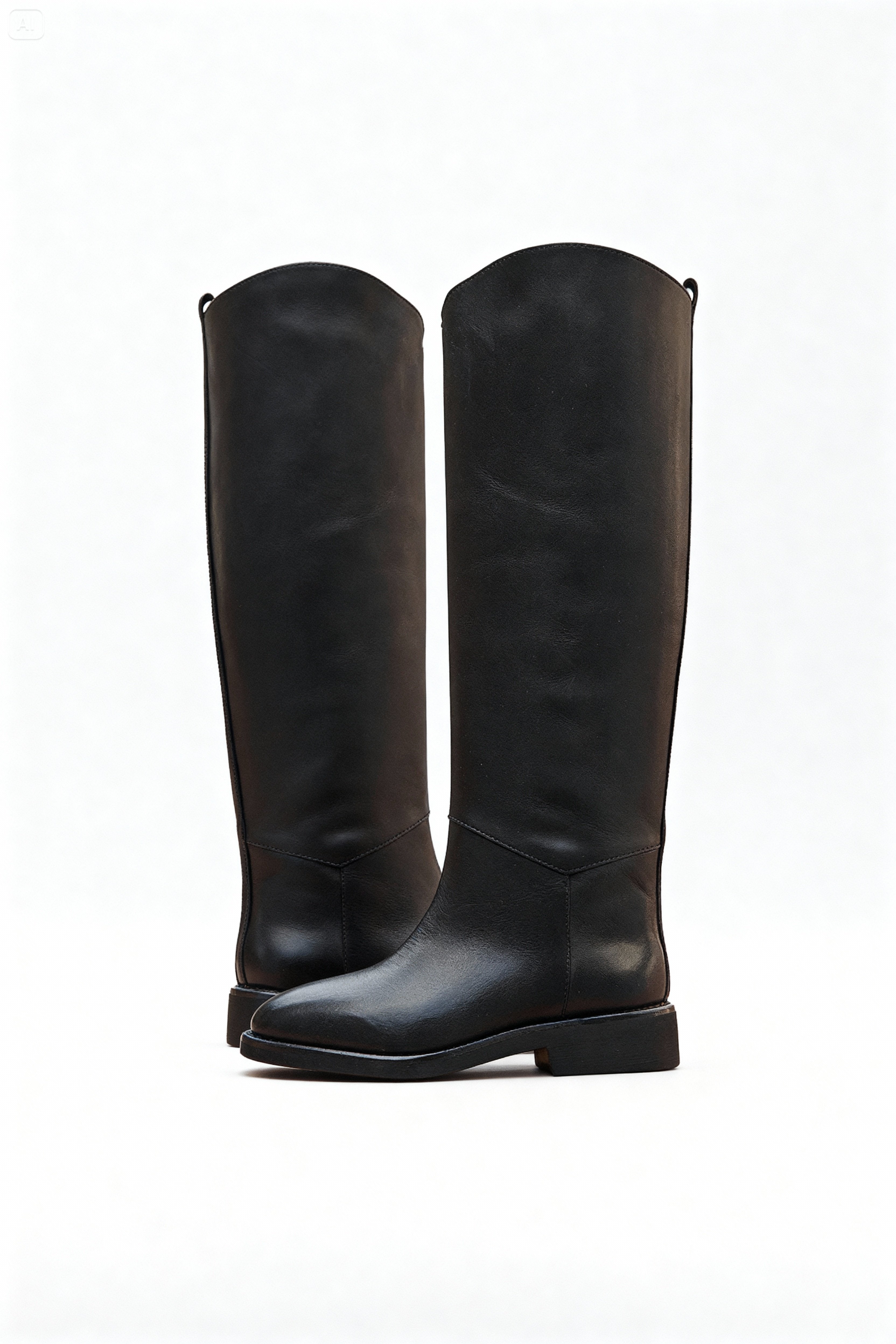 Asimetrik Form Detaylı Siyah Binici Çizme