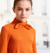 Zincir desenli örme kumaşın hafif dokusuyla tasarımın mükemmel uyumu sayesinde bu güzel kazak 8-15 yaş arası tüm kızlara sofistike bir görünüm sunuyor. Uzun kollu ve arkası kesikli rahat bir balıkçı yaka örme kazağın, hem boyunda hem de bileklerinde çıkartılabilen fiyonklara sahiptir. Bu birbiribini tamamlayan kıyafetleri bir çift ayakkabıyla eşleştirmek için 2024/25 Sonbahar-Kış için Augie L'eauphant ayakkabı koleksiyonunu keşfedin.